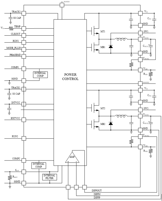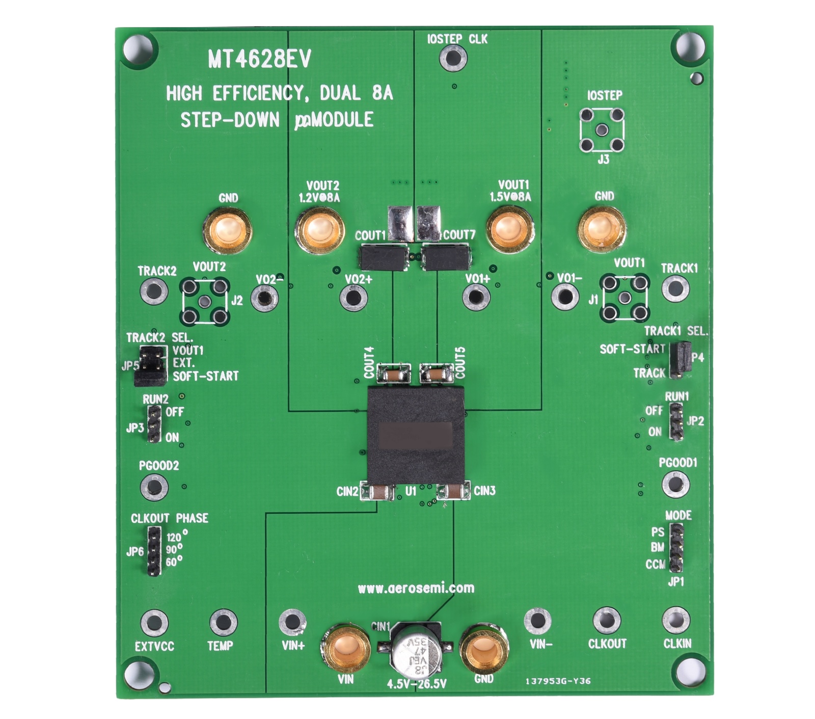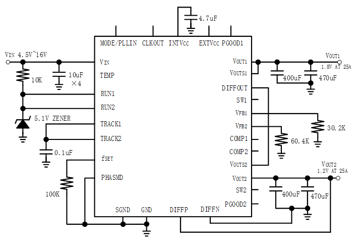 MT4650 完整的雙通道25A 輸出開關(guān)模式DC/DC電源,可以容易地配置為單路兩相位50A輸出。封裝中內(nèi)置了開關(guān)控制器、功率FET、電感器和所有的支持組件。輸入電壓范圍為4.5V 至16V,支持兩個輸出電壓范圍均為 0.6V 至5.5V的輸出(由單個外部電阻器來設(shè)定) 。該器件的高效率設(shè)計(jì)能夠?yàn)槊總€輸出提供25A的連續(xù)電流。僅需少量的輸入和輸出電容器。